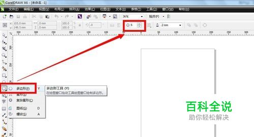在cdr软件里面新建了页面之后,选择使用多边形工具,并且在页面上方工具栏里设置多边形的边数为6