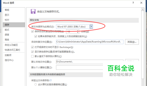 Word2016文档默认保存设置为doc格式的方法