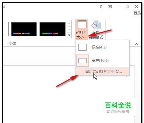弹出“幻灯片大小”操作框,如下图所示的在各项中一 一设置。 宽度和高度数字一样,再点击确定。