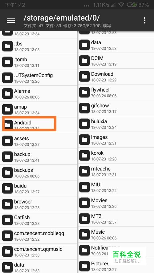 在打开文件管理找到文件夹Android