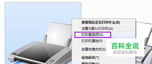 同样使用前我们需要先设置一下,右键点击打印机,选择“打印机首选项”