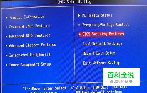 按键盘向右与向下的箭头键,选择「BIOS Security Features」,按键盘的「Enter」键,准备设置开机密码。