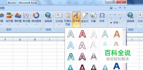 在【艺术字样式】下拉列表上,选择好一种艺术字样式,可看到excel表中会出现默认的字,如下图所示。