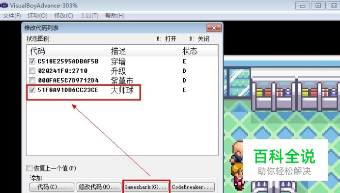 然后用你现在有的钱买一个消毒草,只要100金币,因为已经用了代码,所以消毒草购买完以后,在背包查看会自动变成大师球。 注意:出售和查看背包时候请暂时关闭作弊代码,也就取消掉勾,不然会死机
