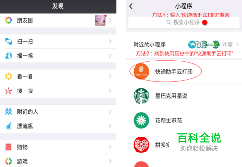 进入微信发现页面--搜索快递助手云打印小程序--进入