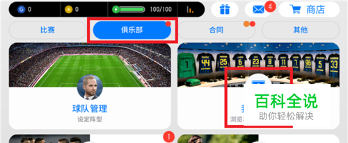 进入实况足球后,在主界面的上方找到【俱乐部】并点击在俱乐部的下方点击打开【我的球队】。