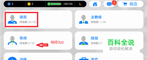 进入自己的球队管理界面后点击左上角的【球员】,在这里可以看到【导师】后方显示的是没有导师。