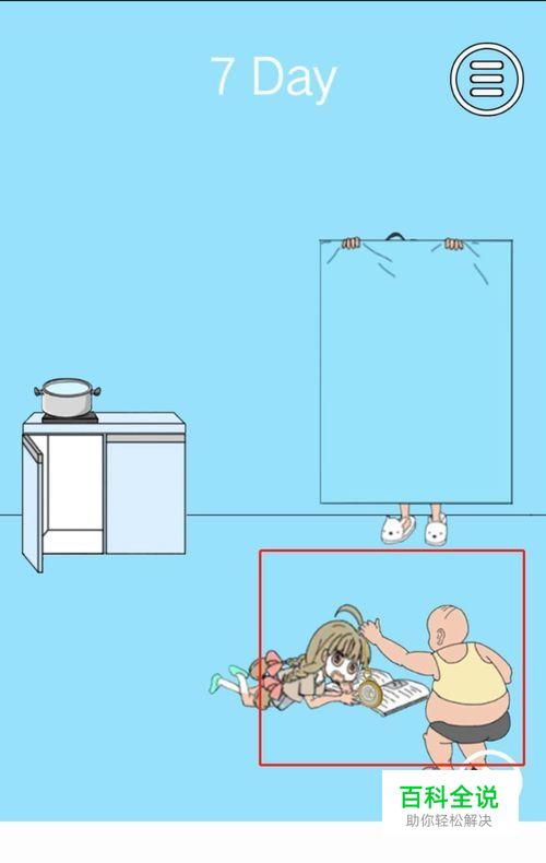 第五关:取下老鼠,吓老婆。老婆跑开后,取出沙发上的泡面放到锅里。