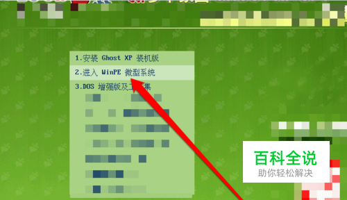 在U盘启动界面,选择进入PE系统。