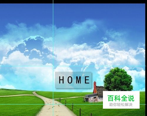 打开图片,纵横向拉好辅助线,辅助线是要放在你要切割的准确位置,这里的重点是裁切小树和房子,用来制作一个热点链接。