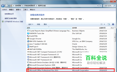 卸载office2013 在【控制面板】-【所有控制面板项】-【程序和功能】便可看到你安装过的所有程序软件,找到下图所示的office 2013,单击【左键】-选择【卸载】即可。
