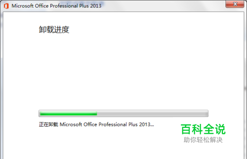 单击【确认】在卸载进度界面等待几分钟,是好几分钟。看到【已成功卸载Microsoft office 2013】,单击【关闭】即可。