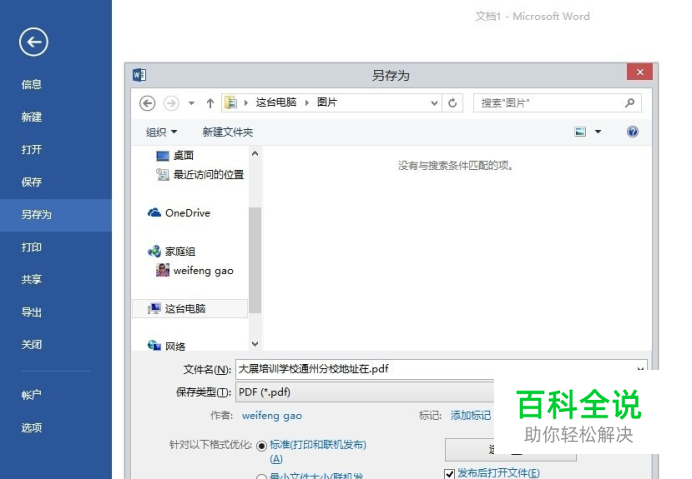 排好版后点击文件-》另存为-》选择好存放的位置-》下拉选择另存为格式PDF-》点击保存。
