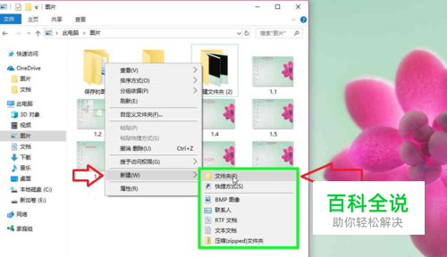 建立新的文件夹。 首先,打开文件资源管理器,在"项目视图 (列表)"上右键单击(在"图片"中)。