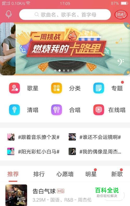 接着我们去打开唱吧软件,进入到下面这个界面,然后点击右上角《已点》。