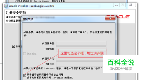 点击“下一步”。到下图界面,由于我们没有购买oracle的服务所以去掉下图中的勾。(目前weblogic可免费使用,需要oracle技术支持的话才需要付费),如下图所示: