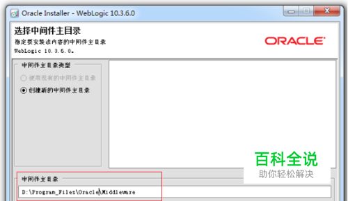 点击“下一步”,到下图界面,然后输入weblogic的安装目录。(路径中最好不要有空格),如下图所示: