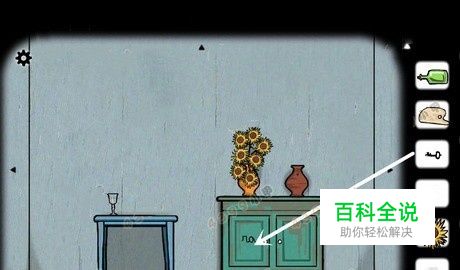 将向日葵装在花盆内,按照下图顺序点击左边的花,右侧的话会上升,即可取得钥匙。