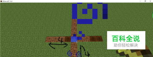 首先在地表向下挖一格,放上一桶水,之后用锄头,向四周锄地,大小距水坑四格。图一: 在这里我想说一下距离四格的原因,作者在做之前先做了个实验,一格水最多只能润湿周边9*9的方块。所以,这个大小是刚刚好,图二: