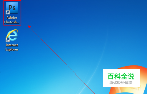 如图所示,我们点击箭头所指的PS图标,打开photoshop软件。