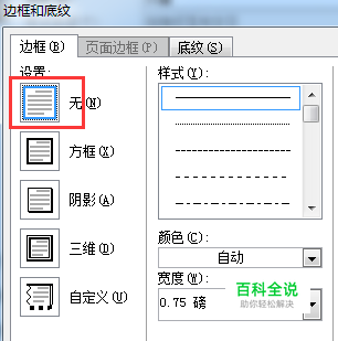 选择自定义页眉边框,点击添加下边框线,设置其宽度为0.75磅,点击确定按钮成功添加页眉横线。 ps:此处关于页眉横线的样式、粗细及颜色大家可根据需求自行设置。