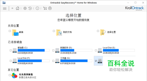 步骤二:选择恢复位置。选择好恢复内容后,单击右下角的“下一个”,进入到选择位置,比如这里选择如下图所示的硬盘I。