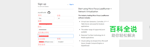 点击“link ”自动跳入注册界面(注册信息必须是英文格式),如图所示:
