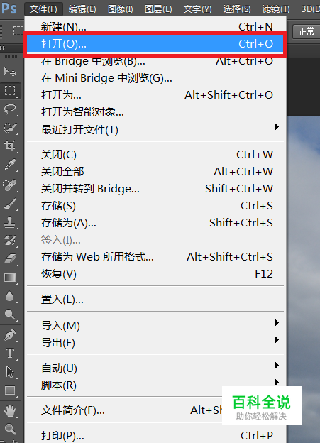 选择 文件——打开,选择一张照片打开。