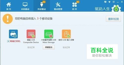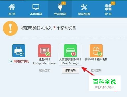 打开驱动人生6——外设驱动——大容量储存器-USB Mass Stroage——修复驱动