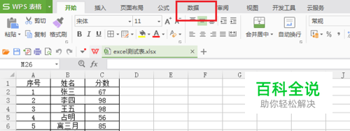 第一步在我们的电脑上打开要筛选数据的excel表格,点击数据,如下图所示: