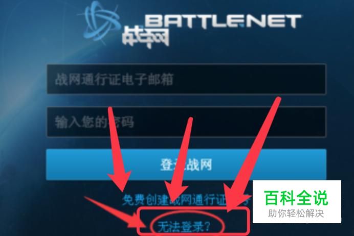 首先我们需要打开战网登录时的管理页面,可以看到在登录下边有一个无法登陆的选项,点击打开.