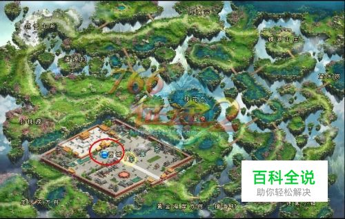 到达黄金果树的刷新点,给大家推荐一个刷新比较密集的点。就在桃源城中央,地图上那个红色圆圈的位置。这个点会刷新两排黄金果树,比较密集。基本上刷新的时候你就只要站着不动等着摘就可以了。当然了,如果想要比较高级的果子,还是眼观六路耳听八方的好。