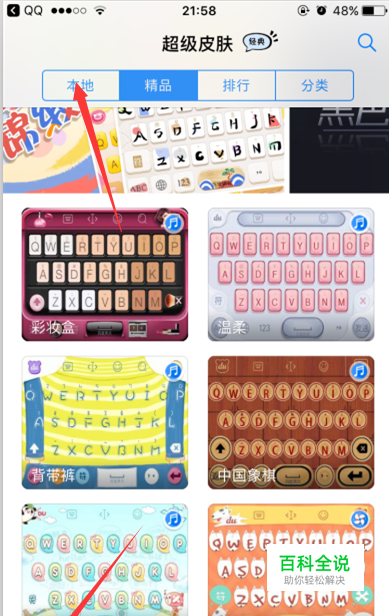 打开百度输入法,点击下方超级皮肤,然后在皮肤选项界面选择上方的本地