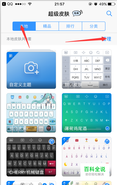 百度手机输输入法7.2版如何进行皮肤管理【ios】