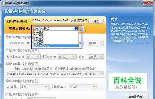 将下载的文件转换成ipad3的音乐格式 添加音乐或视频文件后,即可进入“设置待转换的音频参数”对话框,ipad3支持的标准音频格式是AAC/MP3/WAV,如图,直接选择AAC/M4A格式,然后使用itunes同步至ipad3即可完美播放,关于底部的AAV/M4A的参数设置保持默认就已经是很好的音质效果了,无需再设置。其他标准的格式如MP3/WAV,也可根据自己的需要进行导出。