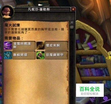 玩家在达到110级之后,可以在达拉然的附魔商店跟凡妮莎塞勒斯接到"魔火试炼"的任务。