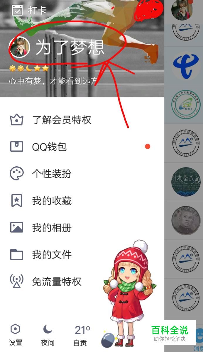 然后点击自己的QQ名称,找到自己的空间,点击并打开“QQ空间”