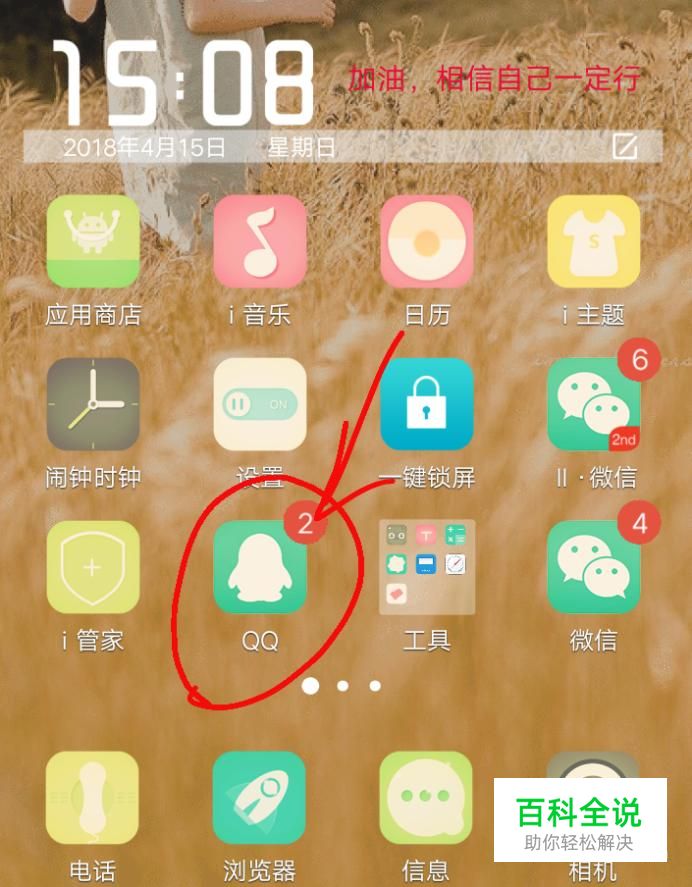 首先打开手机首页,找到QQ这个软件,点击并打开