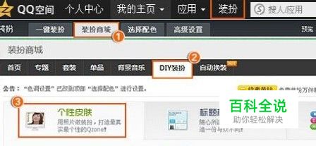 目前黄钻等级达到LV3或者年费黄钻用户可享受自定义皮肤的功能。 登录QQ空间,点击“装扮”---->装扮商城---->“DIY装扮”---->“装扮设置”---->个性皮肤--->“图片上传”---->“属性设置”;按照提示进行操作即可; 操作时需要注意的要点: 1、添加图片时有图片的方式供选择:相册中选择、上传图片、网络图片。(若使用本地电脑上传请注意,图片格式需为jpg/jpeg/png/gif,大于2M的图片请使用极速上传工具。)另其他插入方式:从电脑中上传图片、插入网络图片。 2、上传的图片将储存在您的贴图相册中,请不要轻易删除,删除贴图相册里的相关图片会导致皮肤图片不能正常显示。 3、属性设置:上传完后就可以看到图片的展示效果,可根据喜好选择左上角、正上方、或右上角。 温馨提示:图片的尺寸长和宽会直接影响显示效果,若不能一次性做出全屏图果的用户,建议您可以多次尝试调整图片的长和宽。
