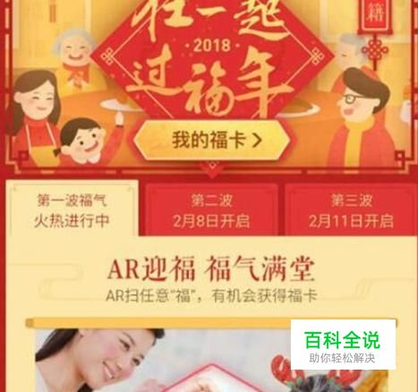 在“在一起,过福年”的首页里面,找到并点击选择“第一波福气”