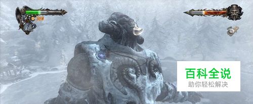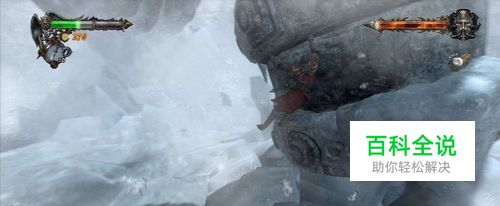 Ice Titan的第一个弱点在手臂的内侧,当玩家顺利爬到那里可看到一个紫色的圆形图腾,靠近它按手把X键进行攻击便能击伤魔王。