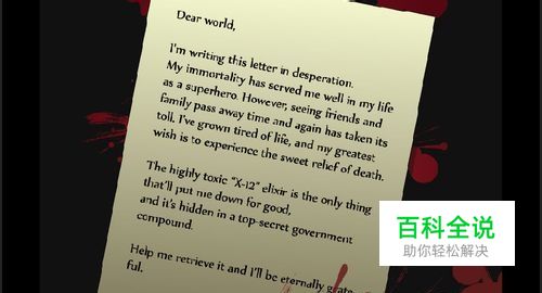 本款游戏的主角是一个绝对超人级别的人物,他拥有很多人梦寐以求的不死之身。看上去他似乎无所不能,但是有一点他却无法办到,那就是死亡。看着亲人朋友一个一个的离他而去他非常伤心。一个偶然的机会他得知秘密机构研制出一种代号为“x-12”的超级毒药,这会是成全他的机会吗?无论如何,他决定不惜一切代价得到它。键盘方向←→键控制超人的移动。方向↑控制超人跳跃。方向键↓表示放下/拿起尸体。空格键表示搬起尸体/扔出尸体。ESC表示重新开始。游戏中你可以无限复活,但是尸体只保留3个,利用尸体抵达下一关入口,最终取得毒药。