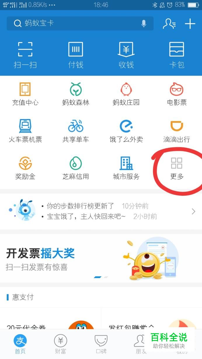 首先我们需要打开手机支付宝,登录你的商家账号之后,在支付宝首页面中找到“更多”这个选项,点击进入此操作。