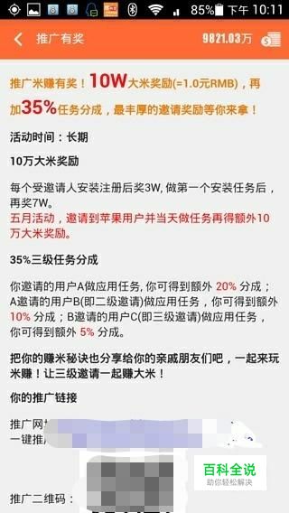 邀请赚钱:邀请好友下载米赚也可以赚钱。点击“邀请好友”,将米赚的链接分享给你的好友,好友下载米赚之后你就可以获得大米,每邀请一个好友可以获得10万大米。