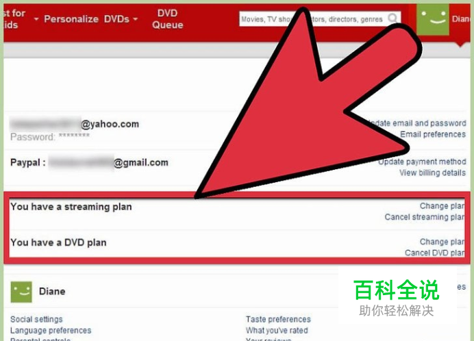 查看账户细节。大多用户会在顶端看到细节,其中有两个选项框:“Streaming”(媒体流)和“DVD”。