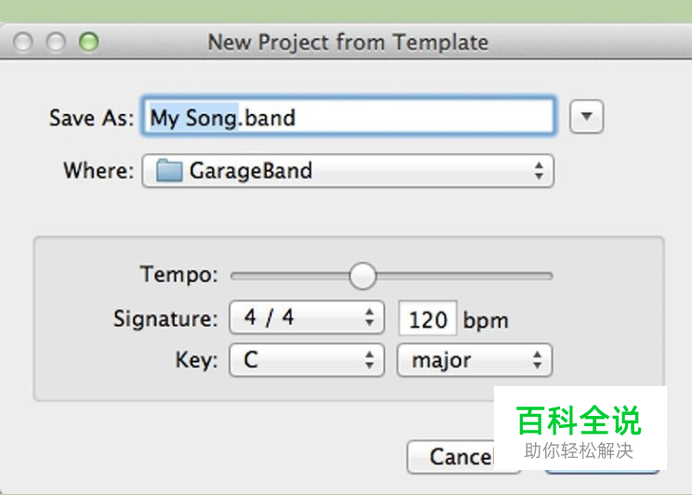 打开GarageBand,点左上方的“文件>新建”,给新的音乐定好名字,调整节奏和音调。
