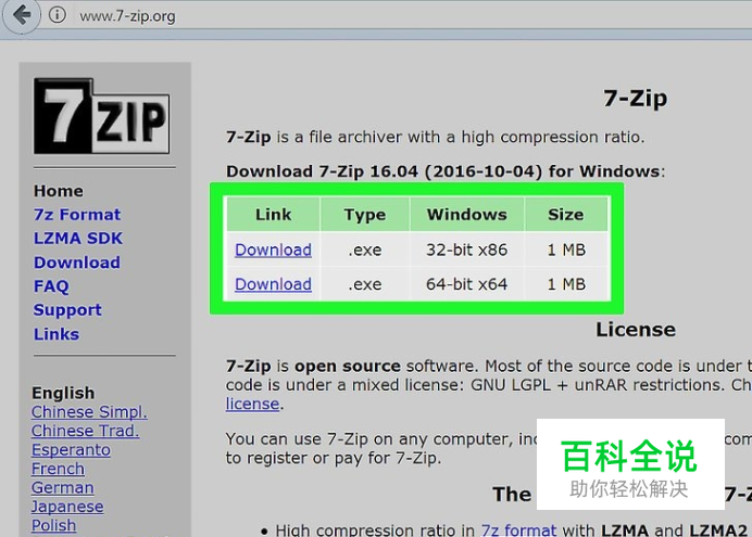 下载并安装7-zip。7-zip是一个免费的压缩管理程序,它可以让你打开FFmpeg文件。