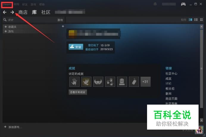 点击左上角steam