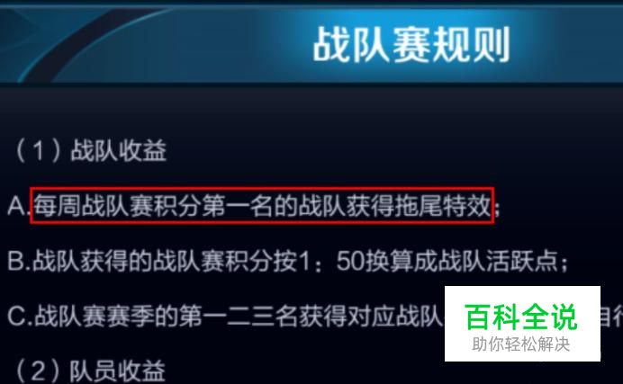 第一步,也是最根本的一步,也就获得是彩虹拖尾特效,彩虹拖尾的特效必须是每周战队赛积分第一名的战队的成员才能获得,其他的玩家都没有资格。