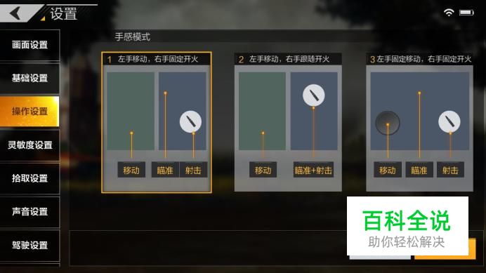 首先在操作设置上我选择第三个,原因很简单,无论是左手还是右手都能够进行瞄准,尤其是你在玩狙的时候特别好用。